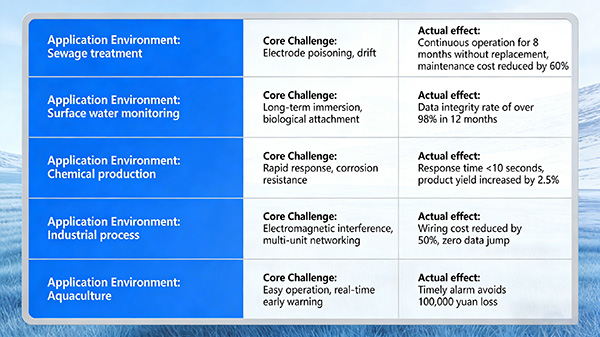 Egal ob Sie Wartungstechniker in Kläranlagen, Chemieingenieur oder Aquakulturbetreiber sind – die Wahl eines für verschiedene Umgebungen validierten Produkts senkt die Gesamtkosten und verbessert die Effizienz der Überwachung.