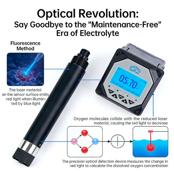 Dieses optische Prinzip bietet revolutionäre Vorteile: kein Vorheizen, keine Elektrolyte und keine Durchflussvorgaben. Im Vergleich zu herkömmlichen Elektroden, bei denen die Membran häufig ausgetauscht und der Elektrolyt nachgefüllt werden muss (wodurch die Wartungskosten um etwa 50 % gesenkt werden), sind Fluoreszenzsensoren äußerst wartungsarm und können während ihrer gesamten Lebensdauer sogar ohne Kalibrierung betrieben werden.