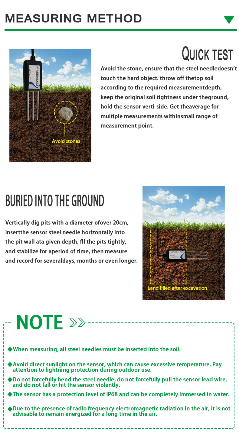 Neben der Landwirtschaft wird dieser Sensor auch häufig im Gartenbau und in der Umweltüberwachung eingesetzt. Durch die kontinuierliche Überwachung der Bodenbedingungen wird eine geeignete Wachstumsumgebung für Gartenpflanzen geschaffen und die Erntequalität verbessert. In der Umweltüberwachung kann er zur Analyse des Bodenzustands in ökologischen Schutzgebieten, zur Aufrechterhaltung des ökologischen Gleichgewichts und zur Förderung einer nachhaltigen Entwicklung eingesetzt werden.