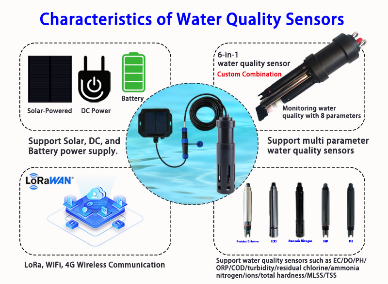 Der LoRaWAN-Solar-Multiparametersensor für die Wasserqualität ist ein drahtloser Sensor zur Überwachung mehrerer Parameter der Wasserqualität. Optionale digitale Wasserqualitätssensoren für gelösten Sauerstoff (CSB), Leitfähigkeit/Salzgehalt, Trübung, Ammoniakstickstoff (pH), ORP, Ionen, Wasserhärte, Chlorophyll, Blaualgen und andere eignen sich für die langfristige Online-Überwachung.