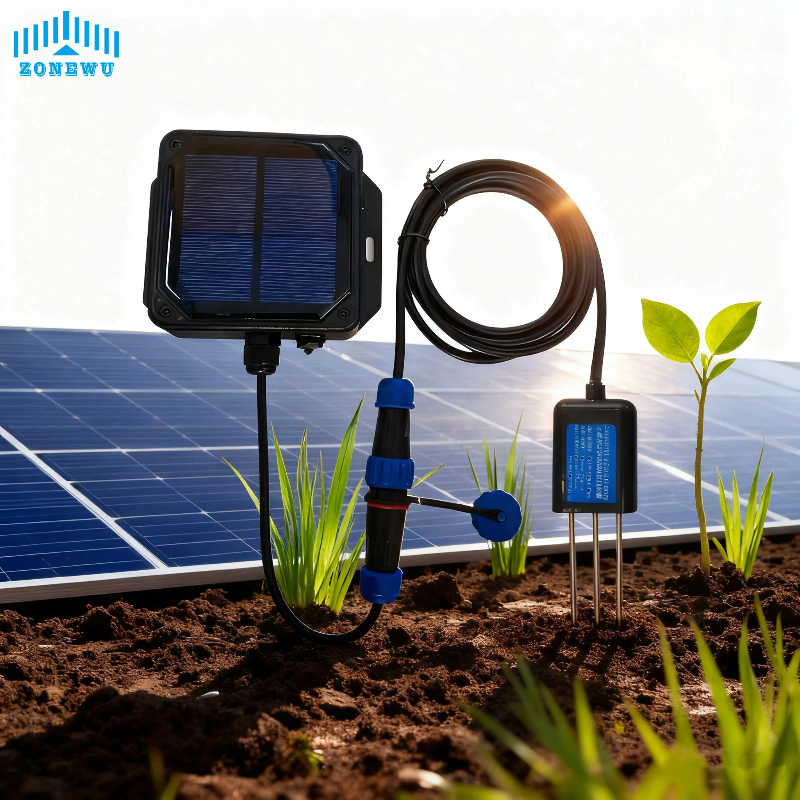 Der ZONEWU LoRa-Solar-Bodensensor für EC/pH-Wert/Temperatur und Luftfeuchtigkeit ist ein Umweltüberwachungsgerät, das Solarenergieversorgung und Fernkommunikationstechnologie integriert. Seine Hauptfunktion besteht in der Erfassung von Echtzeitdaten zu EC/pH-Wert, Temperatur und Luftfeuchtigkeit im Boden.